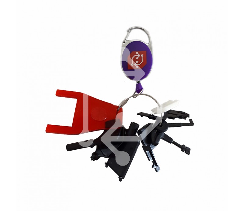 9 clés de réarmement de déclencheurs manuels sur un trousseau. Ne les cherchez plus et ne les perdez plus !